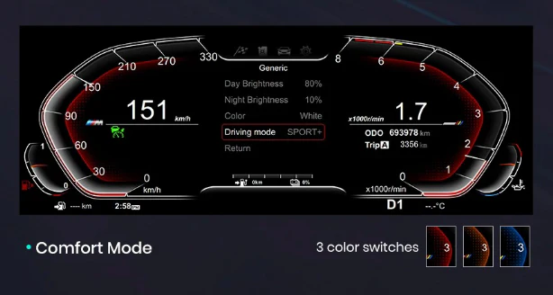 - Estilos Personalizables: Elige entre 4 modos de visualización únicos (Classic, Technology, Track, Comfort) para adaptar el tablero a tu estado de ánimo o estilo de conducción.